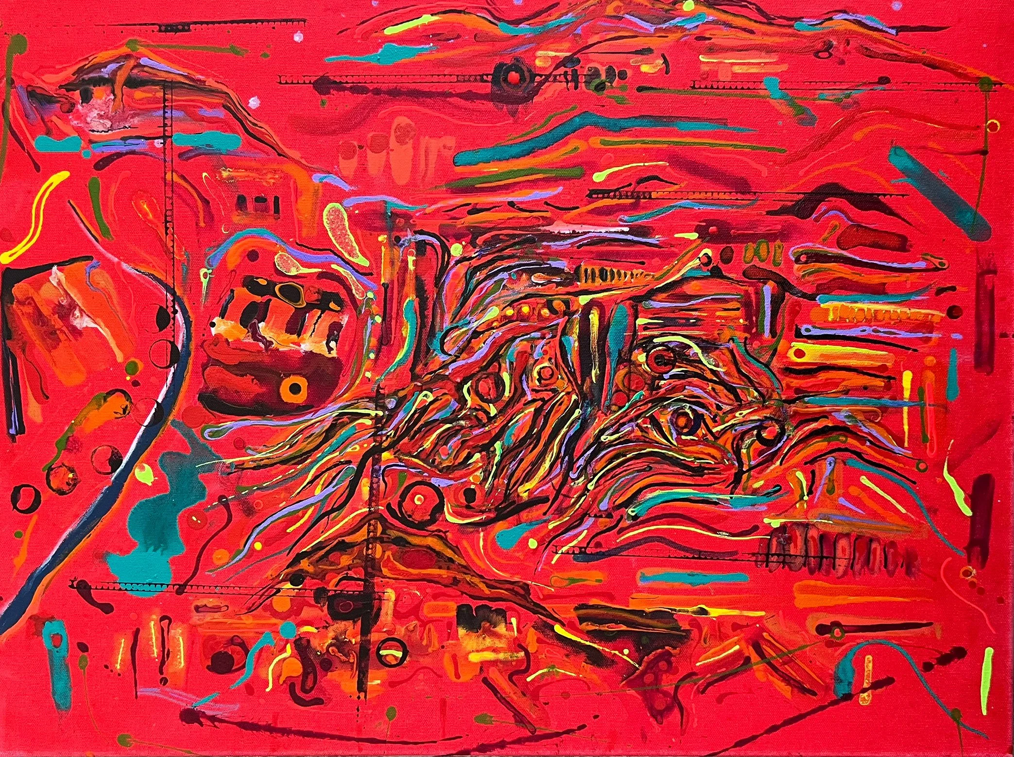"My paints are poured and brushed around forming rivers and pools of color and light. The images may look mostly abstract, but are representative of the locations and people I experience throughout my travels." Ken Feldman